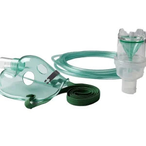 Набор для ингалятора стерильная, одноразового применения, представляет собой комплект, включающий прозрачную лицевую маску анатомической формы, эластичные фиксирующие ремешки, регулируемый носовой зажим, небулайзерную камеру для лекарственного раствора и кислородную трубку для подключения к источнику газа. Изделие изготовлено из медицинского ПВХ, не содержит латекса и предназначено для однократного применения. Камера обеспечивает равномерное распыление лекарственных растворов и подачу аэрозоля в дыхательные пути пациента.